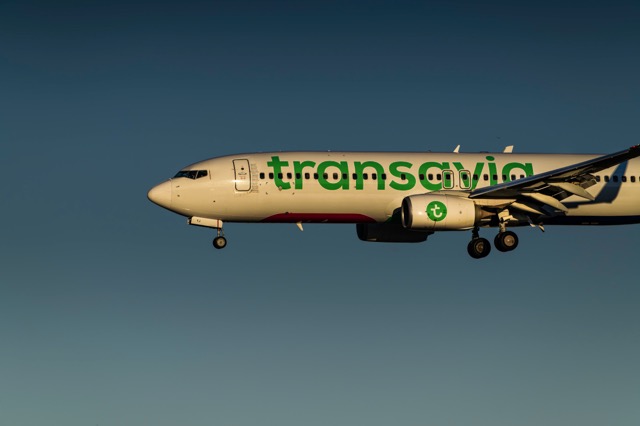 Boeing 737 Transavia au coucher du soleil